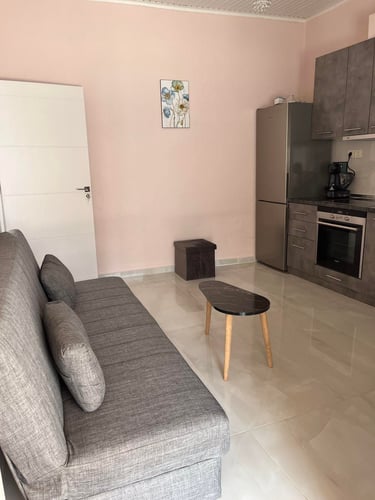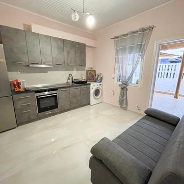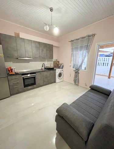 Модерна кухня, която разполага с всички удобства необходими за приготвяне на любими ястия. Разтегателният диван в кухненския бокс предоставя допълнително място за релакс и уютни семейни моменти.