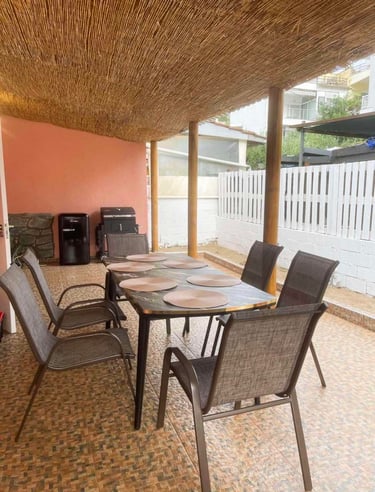 Тази къща с три спални съчетава елегантност и комфорт. В двора, оборудван с барбекю, можете да се насладите на незабравими моменти. Идеалното място за релакс и уют.